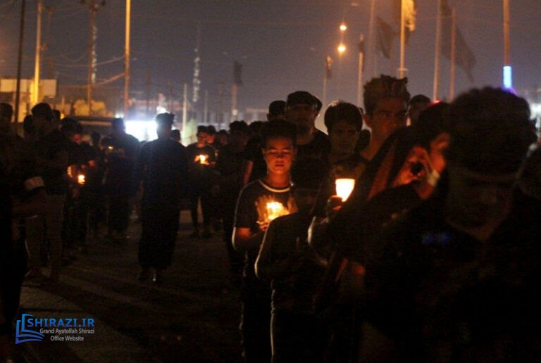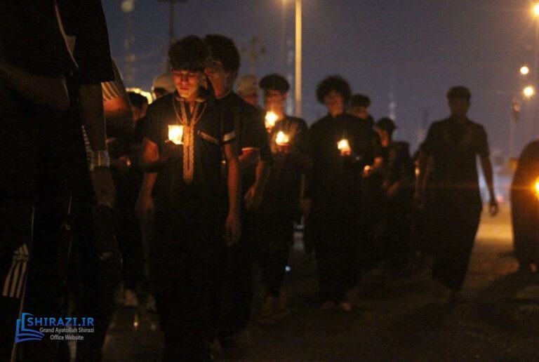 Each year in the evening of the Day of Ashura, the Batal Alqami Community organizes a mourning march in the City of Faw, in Basra province, where hundreds of Shia believers hold burning candles, and march in the city to offer their sympathies to Lady Zaynab, peace be upon her, and mourn the heart wrenching tragedies of Day of Ashura. It is worth mentioning that lighting candles is an ancient custom that commemorates the evening of the Day of Ashura, also known as the Lonely Night.