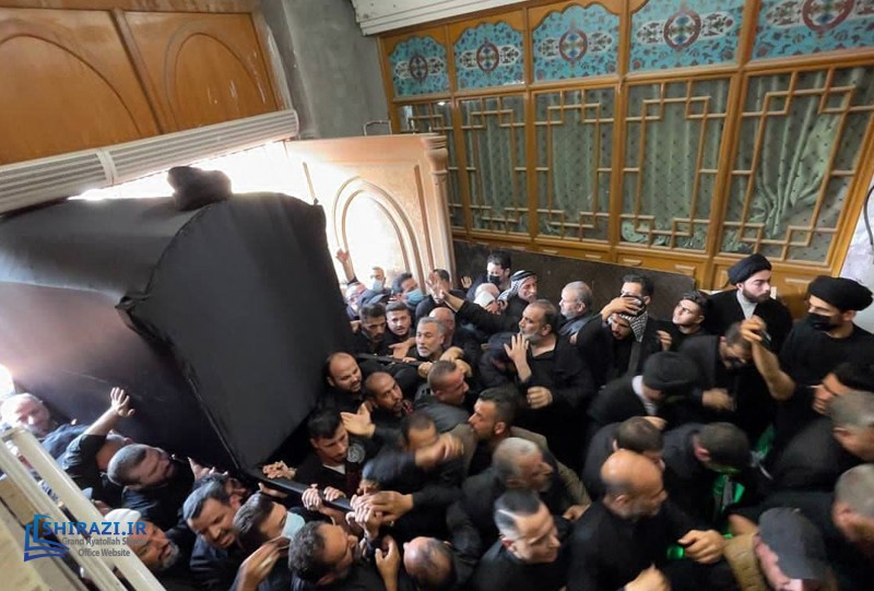 Some delegates from the Office of Grand Jurist Ayatollah Shirazi in holy Karbala, as well as the PR manager of Grand Ayatollah Shirazi and the director of Imam Hussein Media Group took part in the funeral service of late Great Ayatollah Sayed Saeed Hakeem in this City. These delegates, accompanied with Sayed Mahdi Shirazi took part in this funeral, during which the participants offered their condolences to the Promised Savior, Imam al-Mahdi (may God hasten his reappearance). It is worth noting that Grand Ayatollah Sayed Saeed Hakeem passed away on Friday, 25th of Muharram 1443 AH. His body will be put to rest in holy Najaf, after the funeral service held in holy Karbala.