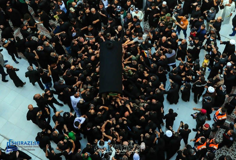 Delegates from the Office of Grand Ayatollah Shirazi in holy Najaf took part in the funeral service of late Great Ayatollah Hakeem on Sunday, 27th of Muharram 1443 AH. This ceremony was attended by groups of Shia believers and lovers of AhlulBayt (peace be upon them) as well as representatives of Islamic authorities and cultural and religious figures.