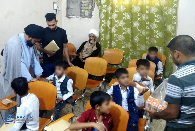 Followers of the Grand Jurist Ayatollah Shirazi in the city of Basra in Iraq donated stationery items to tens of orphans. It is worth noting that this charity work was conducted in collaboration with the Al-Sha’aer TV and the Orphans Care Center of Shadi Aytam.