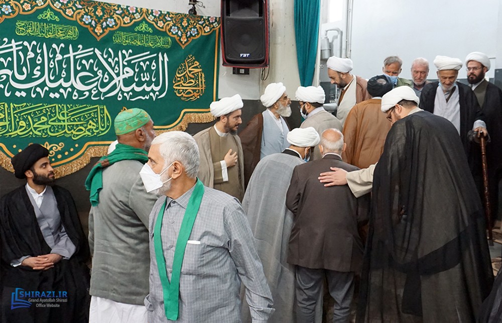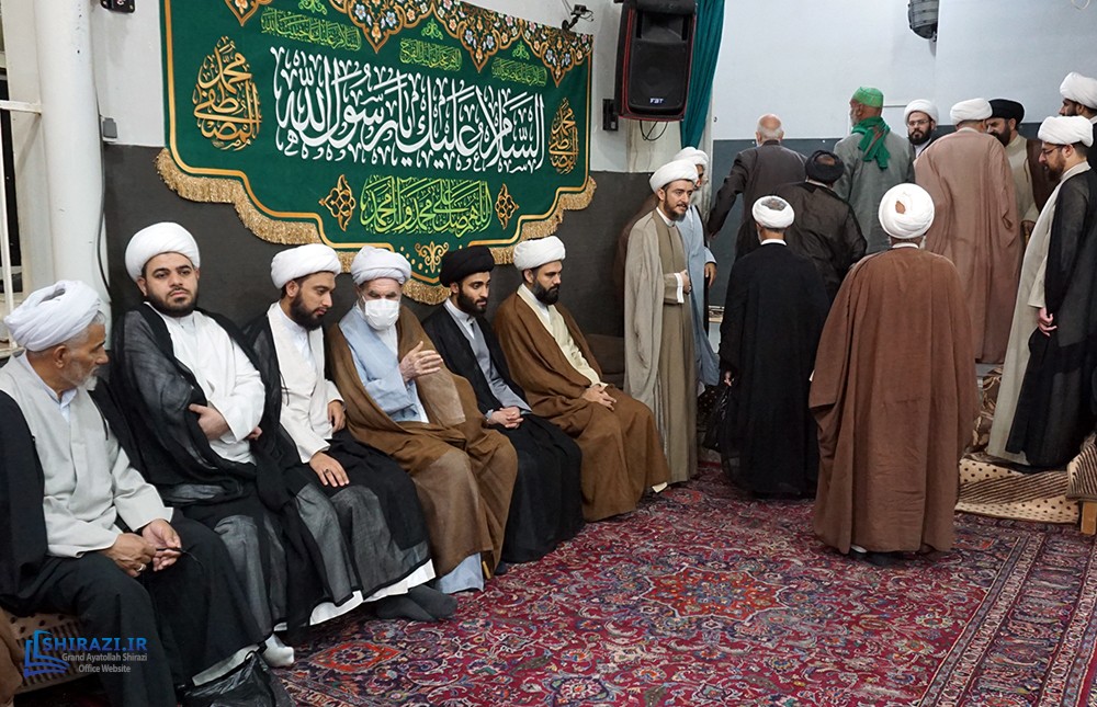 The House of Grand Shia Jurist Ayatollah Shirazi in the holy city of Qom in Iran, held a celebration to honor the birth anniversary of Prophet Mohammad, and his grandson, Imam Sadiq, peace be upon them. Clerics, Seminarians, and the public attended this ceremony.
