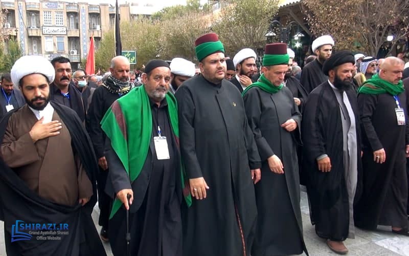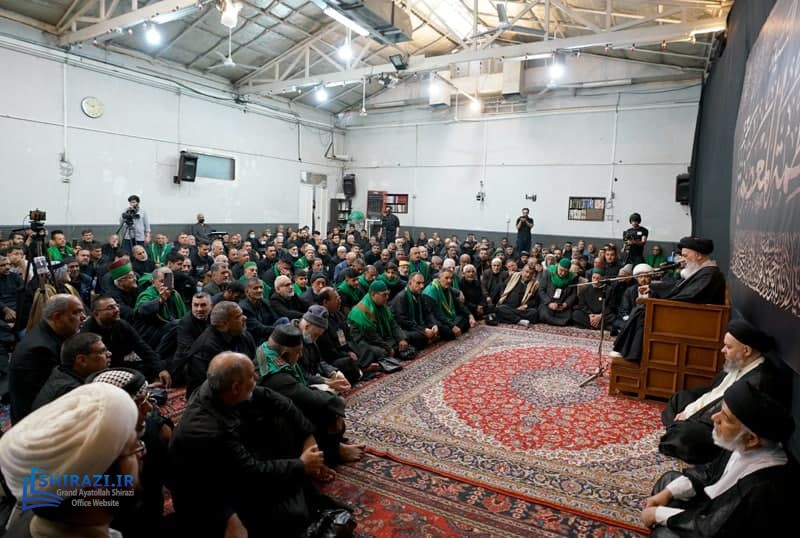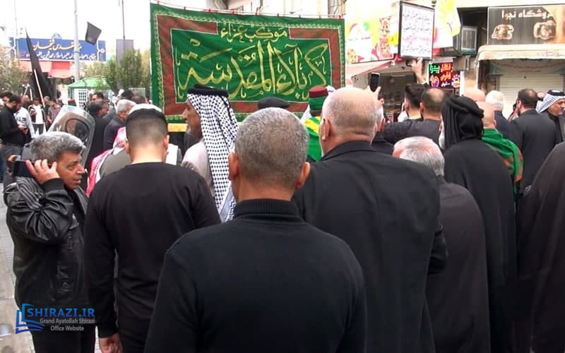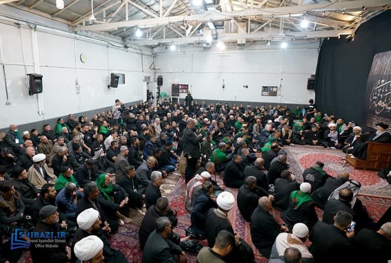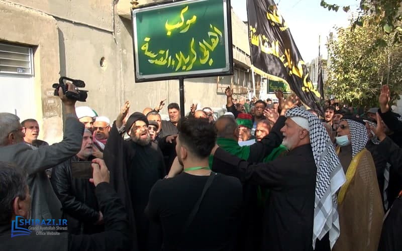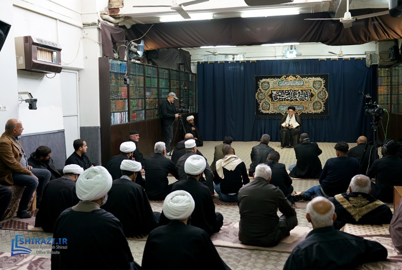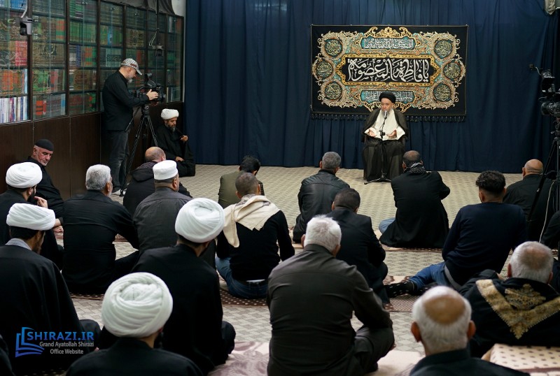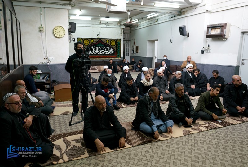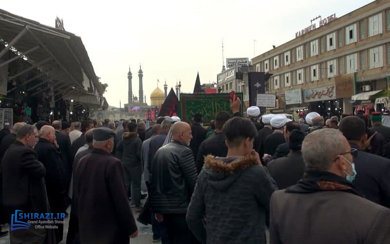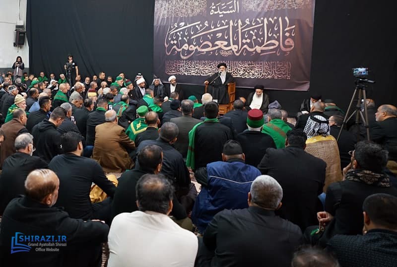 On the ninth day of the month of Rabie’ Althani 1443AH, some managers of pilgrim serving units in the holy city of Karbala along with believers from this same city, arrived at the house of Grand Jurist Ayatollah Shirazi, in the holy city of Qom, in Iran. After listening to a brief speech delivered by the Grand Jurist Ayatollah Shirazi, these believers headed to the holy shrine of Lady Fatemah Masoumeh, the daughter of Imam Mosa Kadhem, and mourned her martyrdom, blessings of God be upon her and her father.