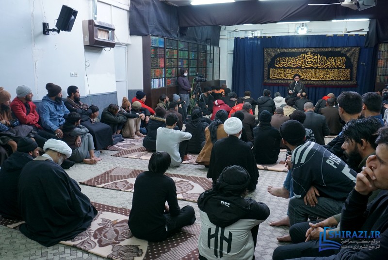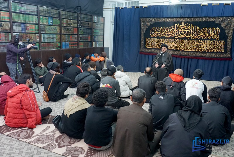 خلال حضورهم في بيت سماحة المرجع الشيرازي دام ظله، وبعد إقامتهم لصلاتي الظهر والعصر جماعة، استمع الحضور من أعضاء القافلتين إلى كلمة حجّة الإسلام السيّد جعفر الشيرازي، نجل سماحة المرجع الشيرازي دام ظله.