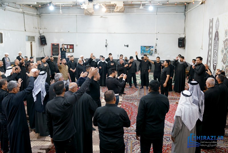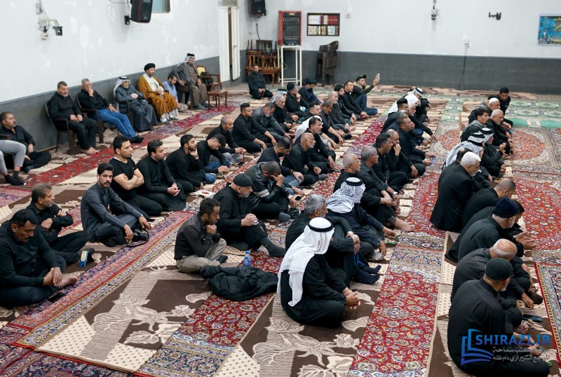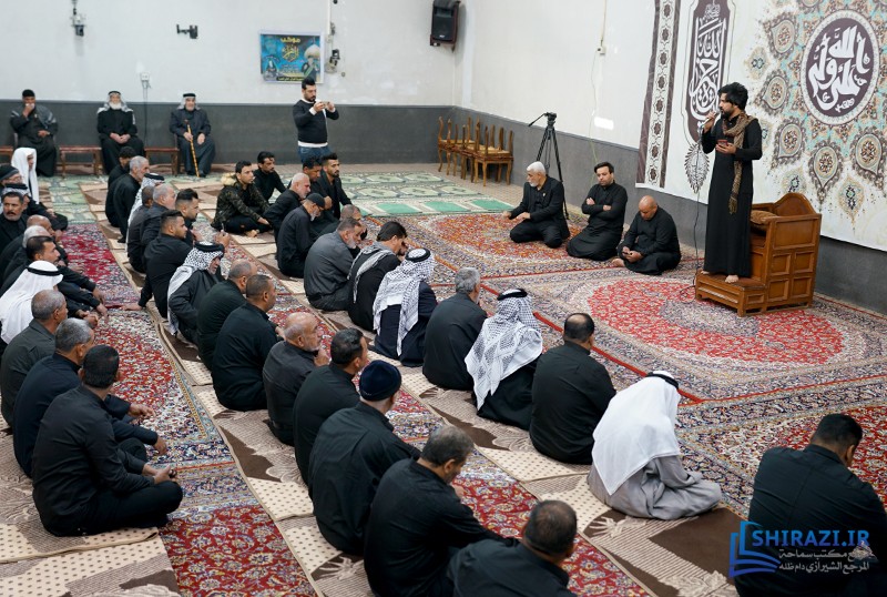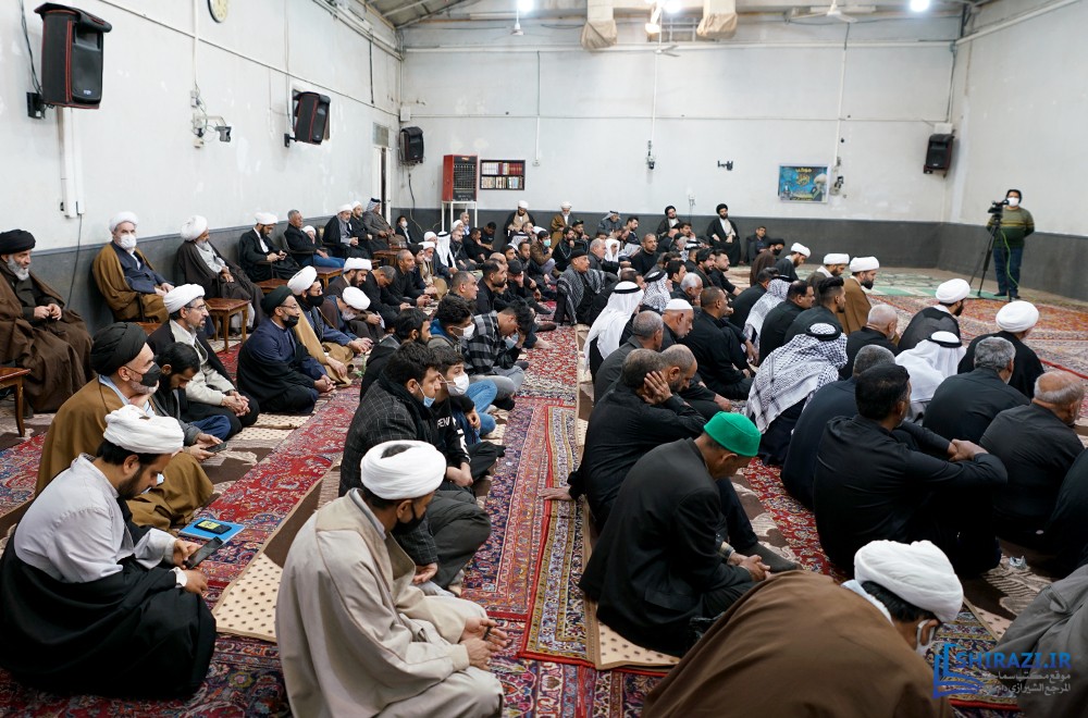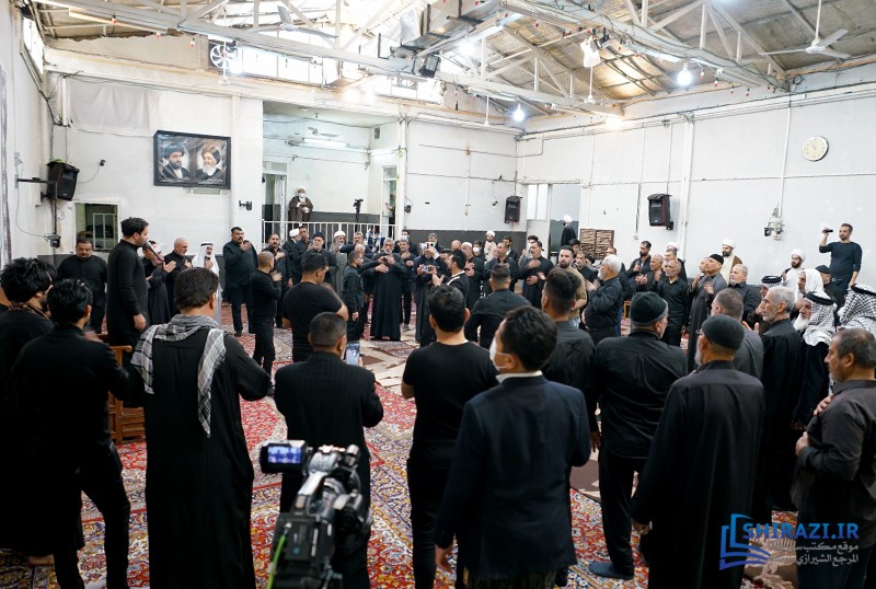 خلال حضورهم في بيت المرجعية، شارك أعضاء القافلة والموكب المذكورين بالجلسة العلمية اليومية المنعقدة في بيت سماحة المرجع الشيرازي دام ظله، وأقاموا العزاء على مصاب أهل البيت الأطهار صلوات الله عليهم وشاركوا في أداء صلاتي الظهر والعصر جماعة، وبعدها استمعوا إلى كلمة نجل سماحة المرجع الشيرازي دام ظله، حجّة الإسلام والمسلمين السيّد جعفر الشيرازي.