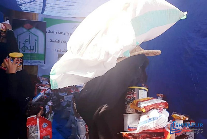 كانت الإعانات التي أرسلتها مؤسسة أمّ أبيها صلوات الله عليها، سلال من (15) مادة غذائية أساسية، وجرى توزيعها على العوائل الشيعية المتعفّفة.