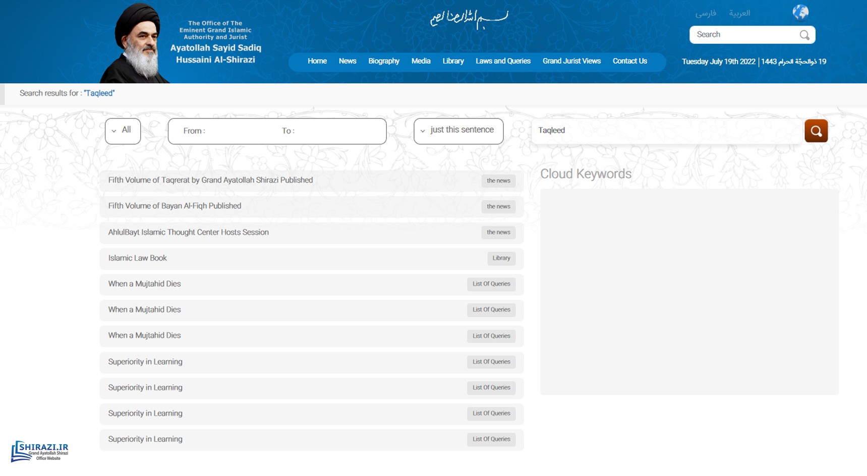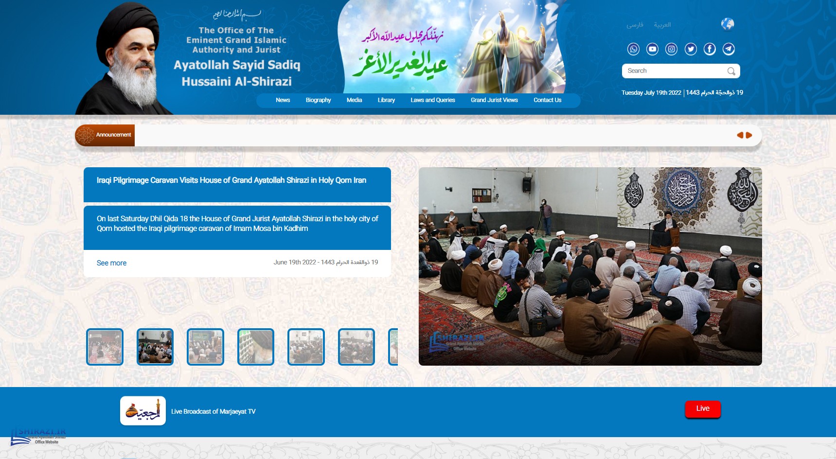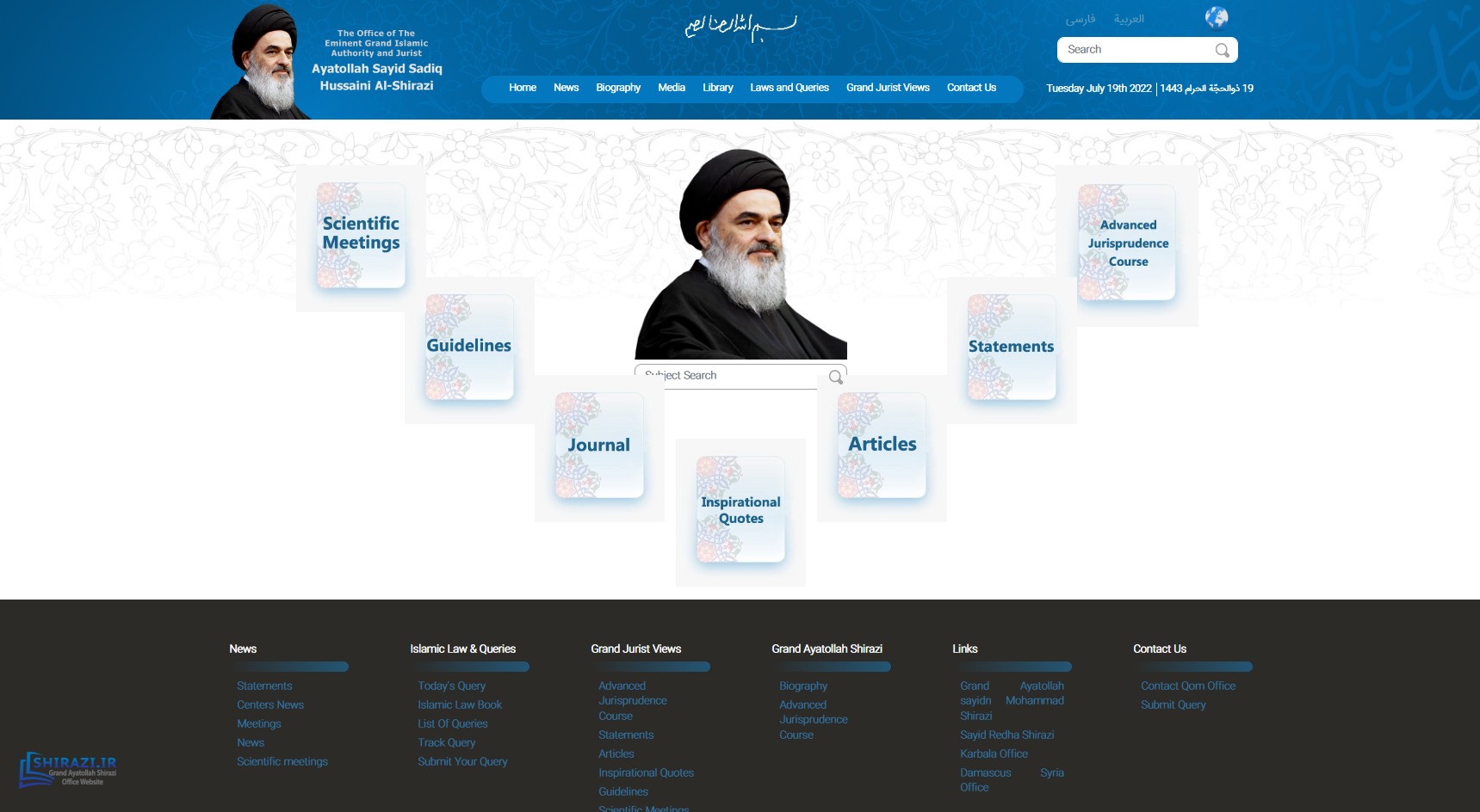 On the glorious Eid al-Ghadir, the official website of the Grand Shia Jurist Ayatollah Sayed Sadiq Shirazi was launched into a new format. This website is now accessible on www.shirazi.ir, in the three languages of Persian, Arabic, and English. The new services on this website are: