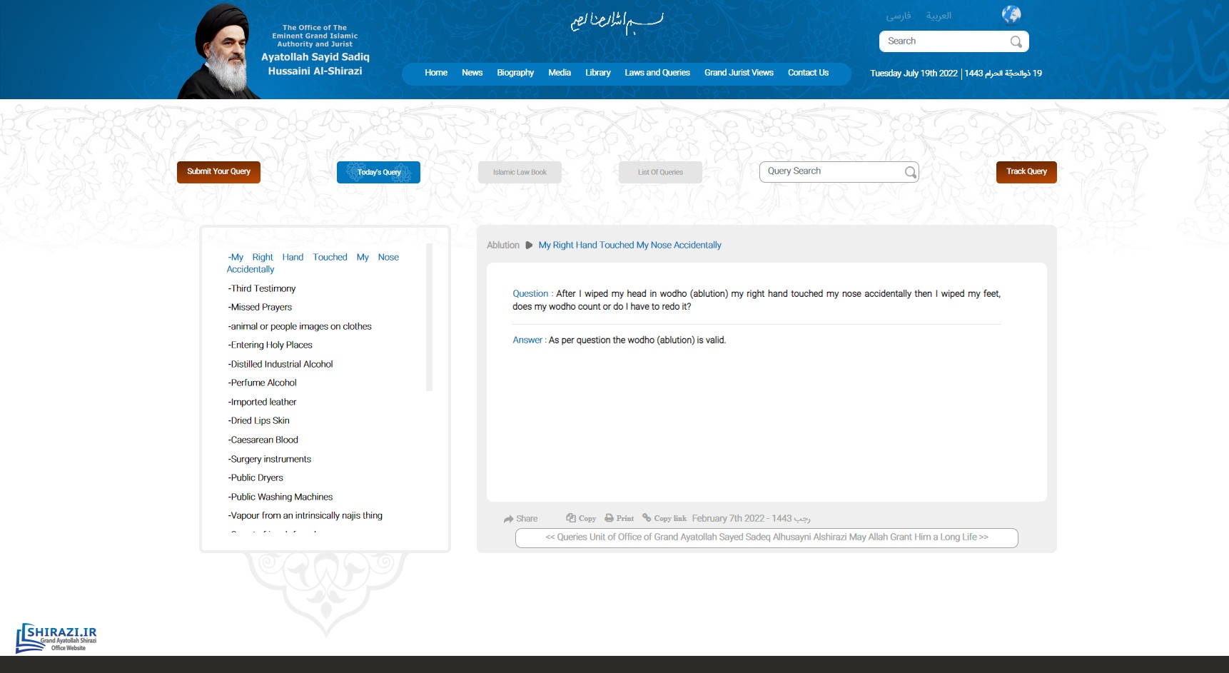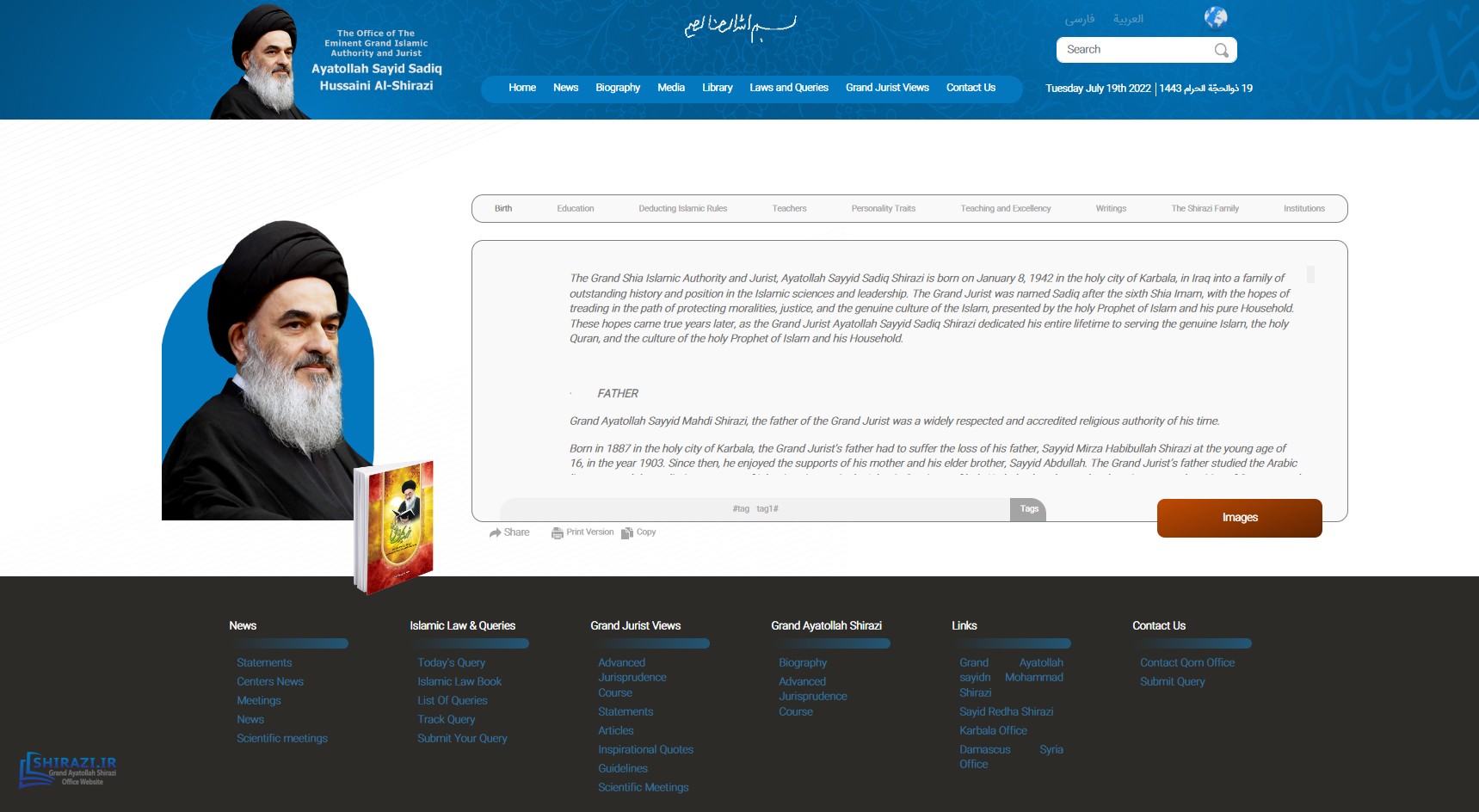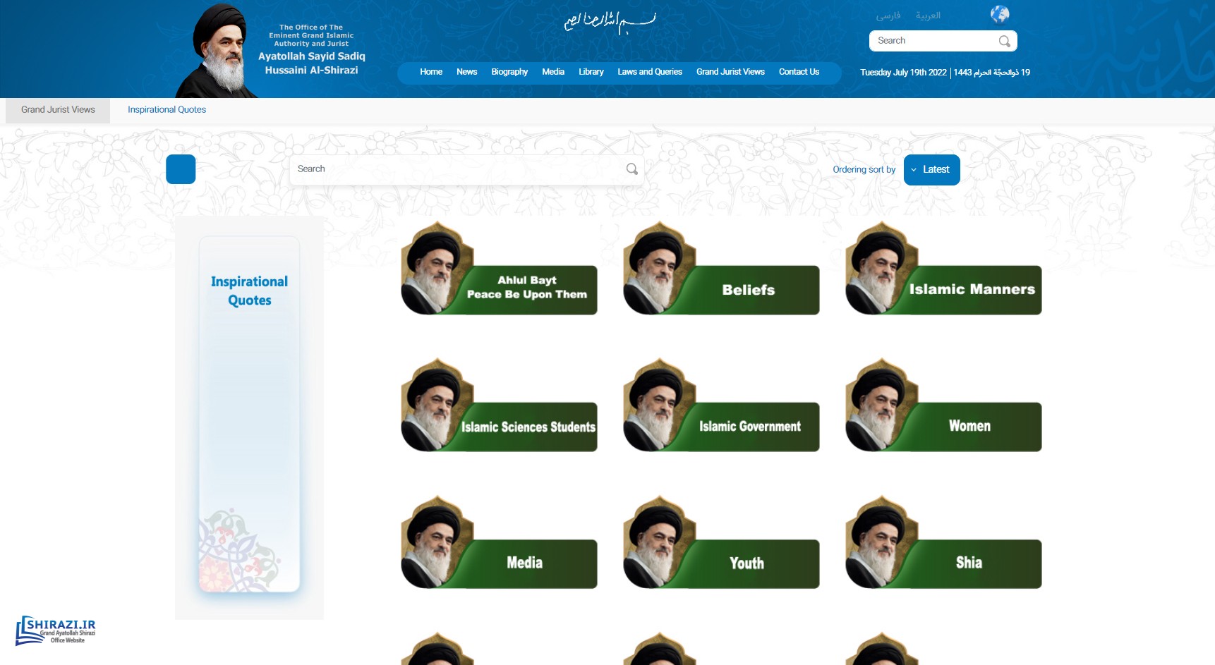 On the glorious Eid al-Ghadir, the official website of the Grand Shia Jurist Ayatollah Sayed Sadiq Shirazi was launched into a new format. This website is now accessible on www.shirazi.ir, in the three languages of Persian, Arabic, and English. The new services on this website are: