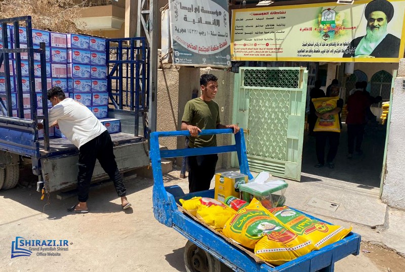 Um Abiha Institute, affiliated with the Office of Grand Ayatollah Shirazi in holy Karbala provided the religious mawakib with supplies of water and food items ahead of Muharram 2022. These supplies are distributed among these mawakib, in compliance to the directives of Grand Ayatollah Shirazi. More than 100 mawakib received these donations.