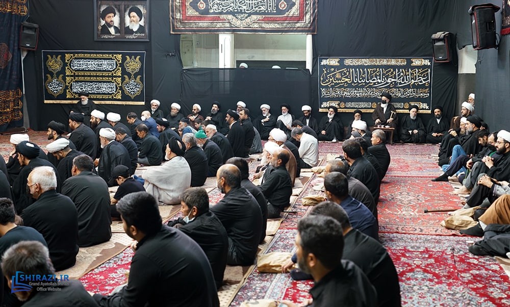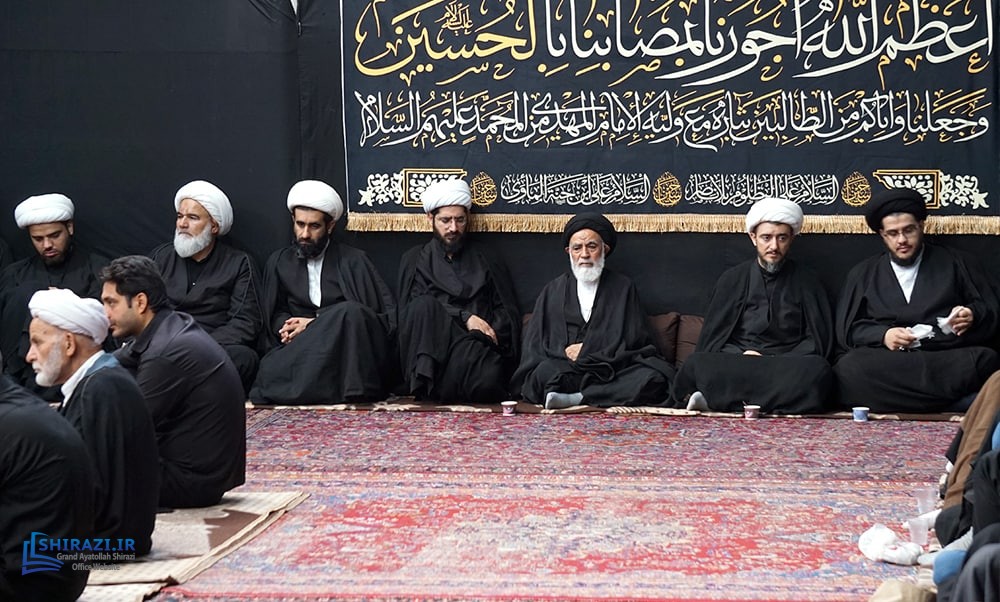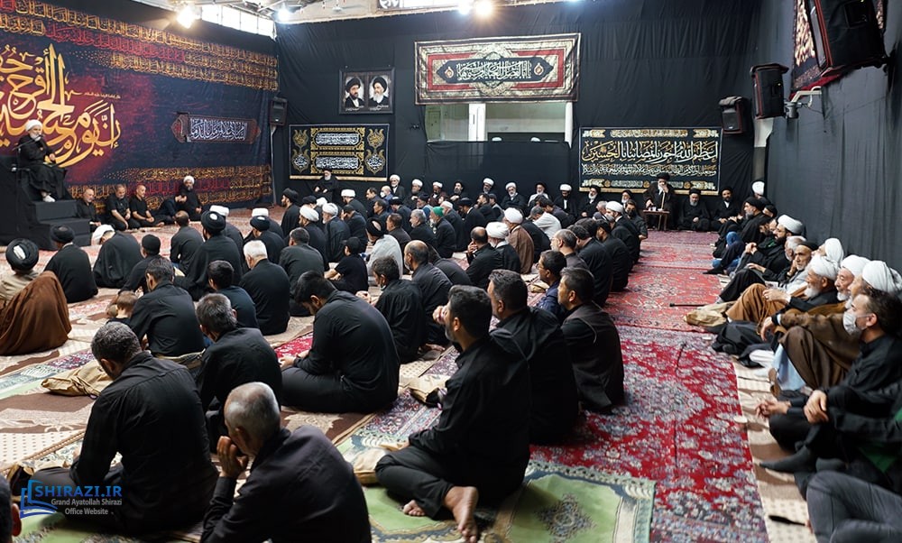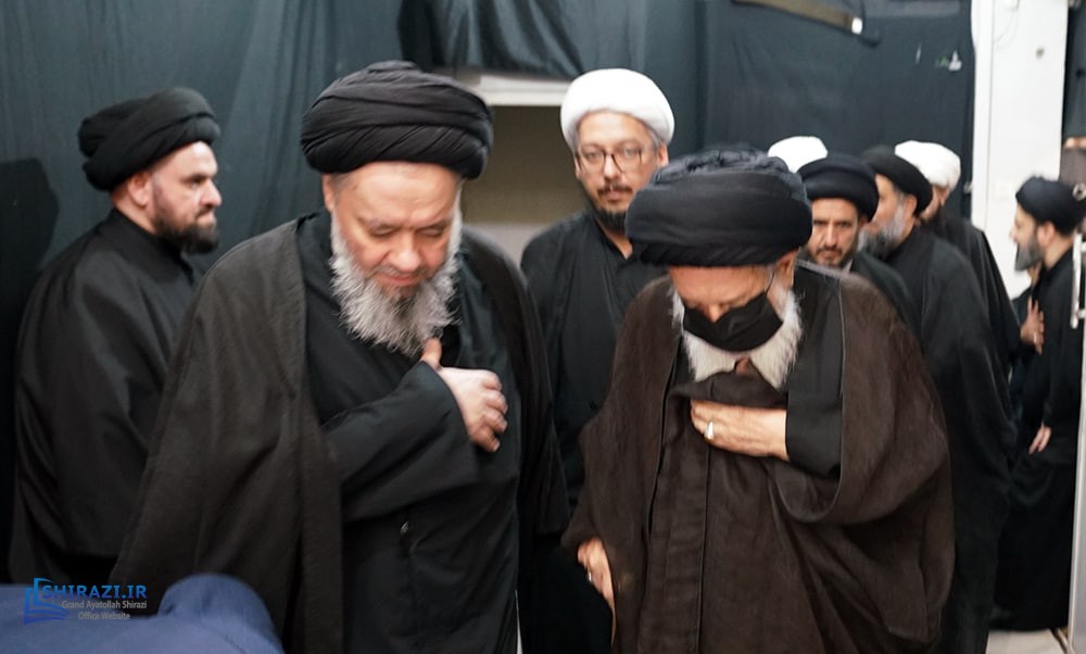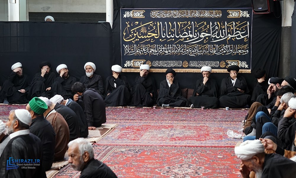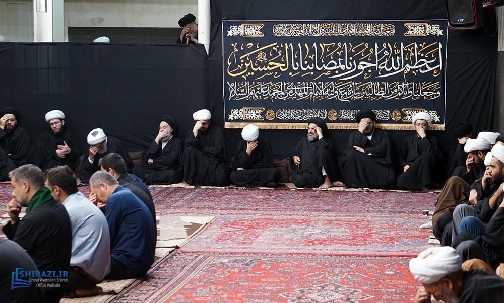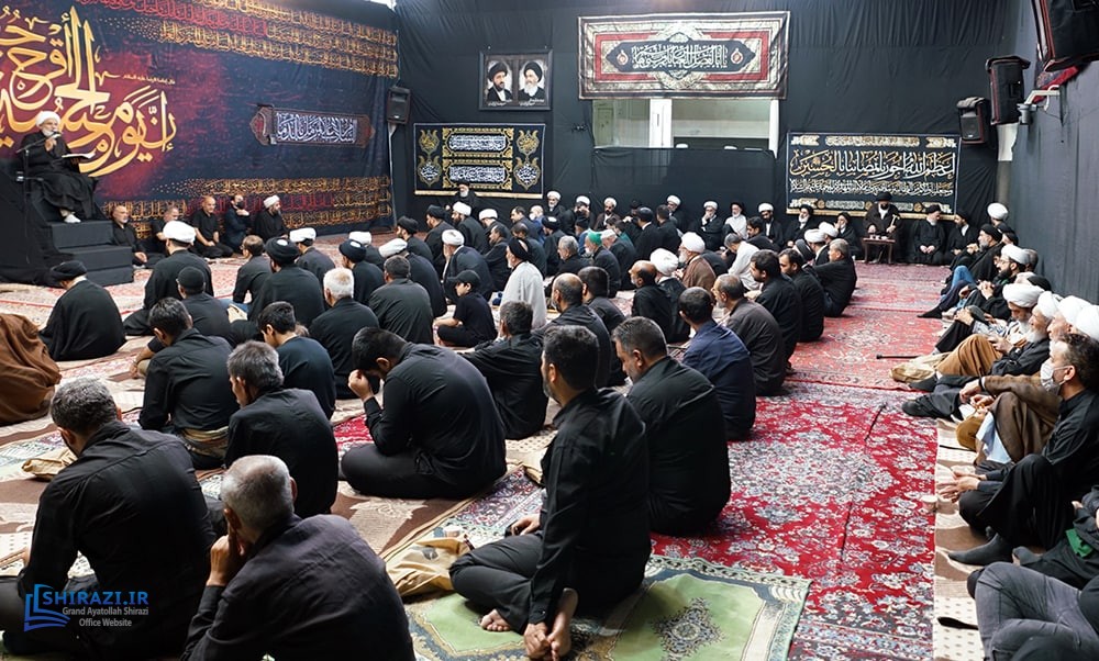 On the arrival of mourning month of Muharram, the House of Grand Shia Jurist Ayatollah Sayed Sadiq Husayni Shirazi, in the holy city of Qom in Iran, hosts commemorations for Imam Hussein’s martyrdom, blessings of God be upon him. The believers, clerics, scholars as well as the Grand Shia Jurist Ayatollah Shirazi, may God grant him a long life, attend these martyrdom commemoration ceremonies. The lecturers in these ceremonies address the uprising of Imam Hussein, blessings of God be upon him, in brining reform, standing against injustice and tyranny, and eulogies are also recited. It is worth noting that the House of Grand Ayatollah Shirazi will continue to host these commemoration ceremonies for thirteen consecutive days, both in the morning and in afternoon in the languages of Persian and Arabic.