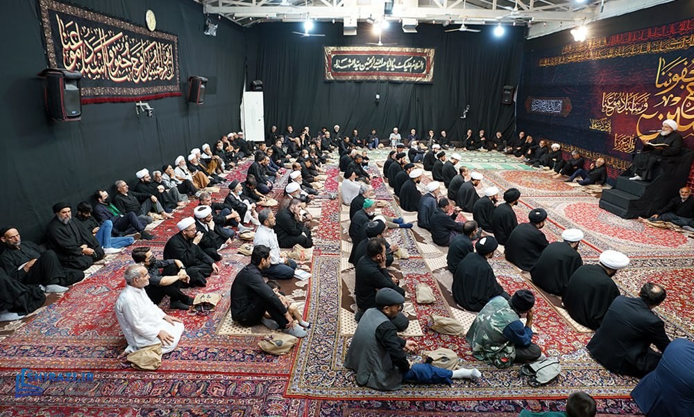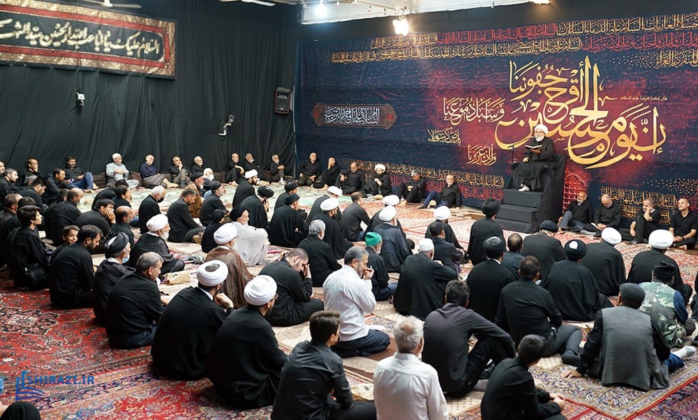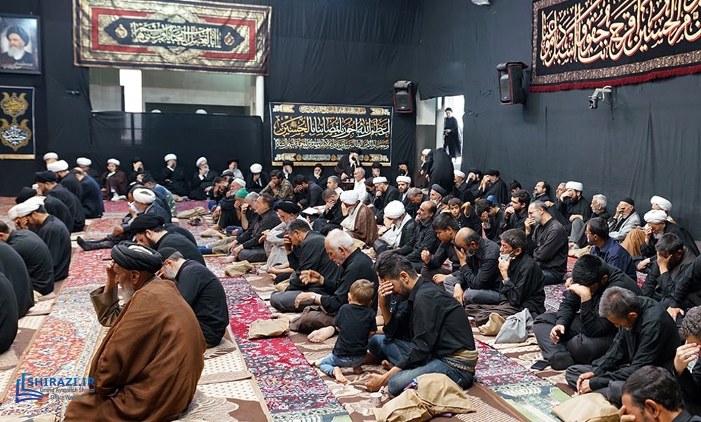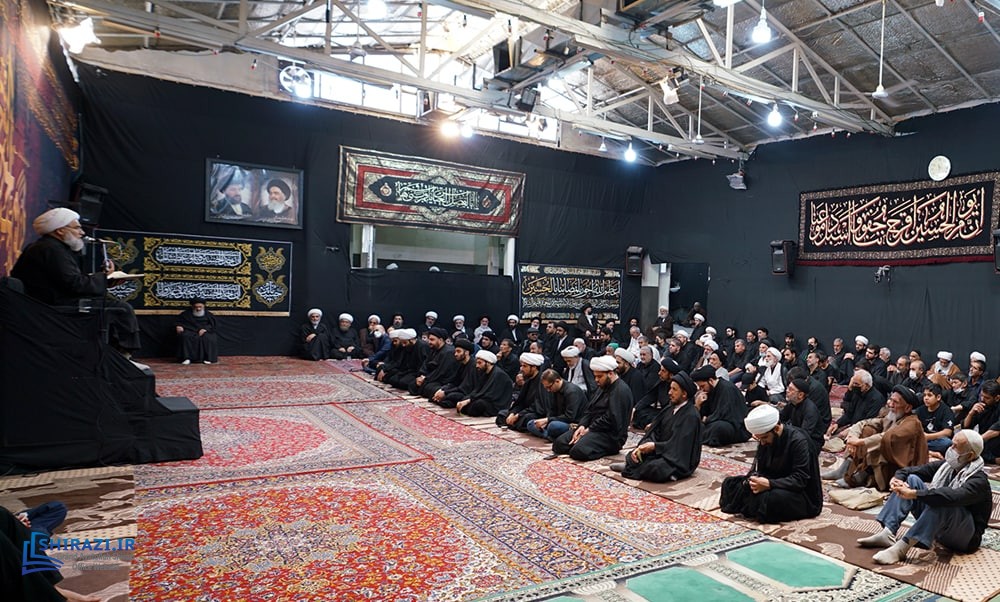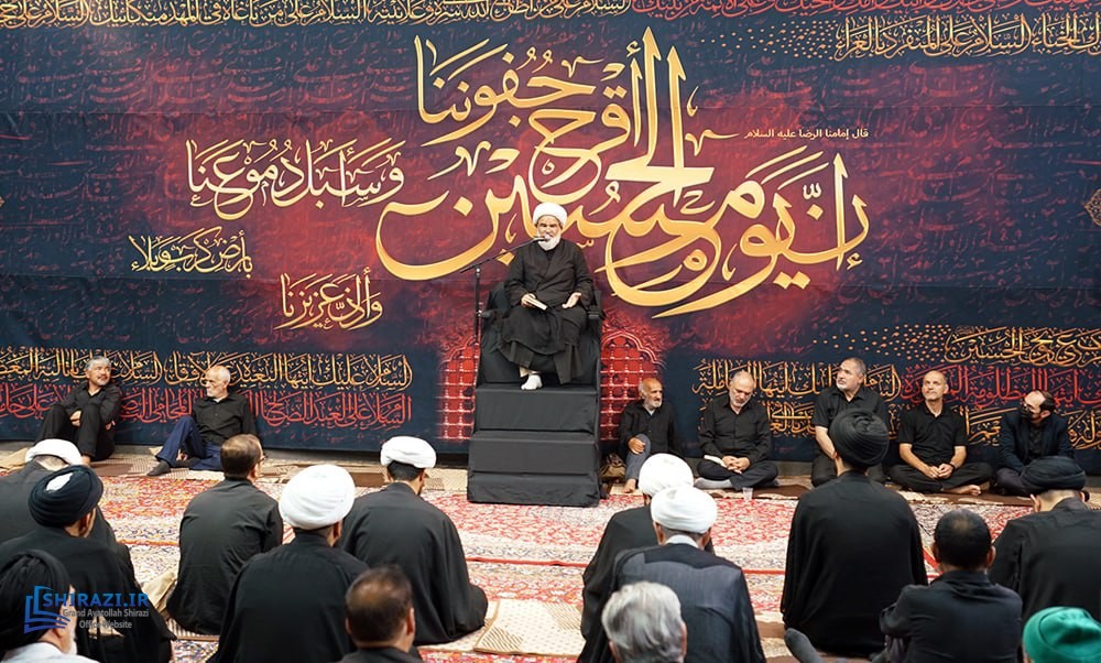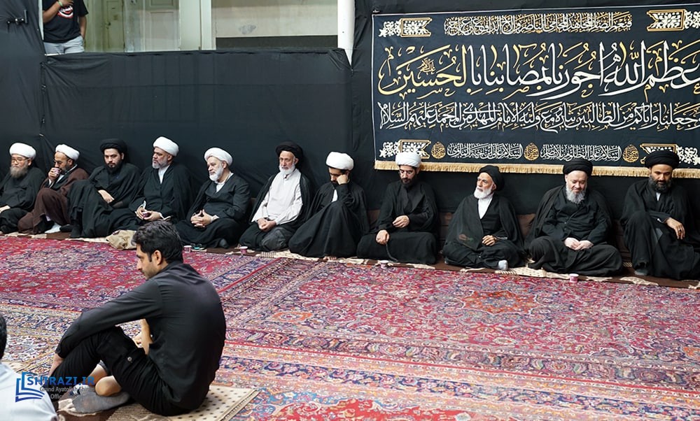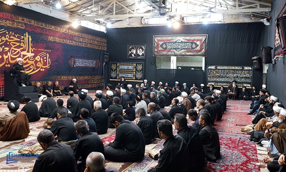 On the arrival of mourning month of Muharram, the House of Grand Shia Jurist Ayatollah Sayed Sadiq Husayni Shirazi, in the holy city of Qom in Iran, hosts commemorations for Imam Hussein’s martyrdom, blessings of God be upon him. The believers, clerics, scholars as well as the Grand Shia Jurist Ayatollah Shirazi, may God grant him a long life, attend these martyrdom commemoration ceremonies. The lecturers in these ceremonies address the uprising of Imam Hussein, blessings of God be upon him, in brining reform, standing against injustice and tyranny, and eulogies are also recited. It is worth noting that the House of Grand Ayatollah Shirazi will continue to host these commemoration ceremonies for thirteen consecutive days, both in the morning and in afternoon in the languages of Persian and Arabic.