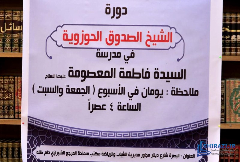 تقيم مدرسة السيّدة فاطمة المعصومة سلام الله عليها التابعة لمكتب المرجع الديني الكبير سماحة آية الله العظمى السيّد صادق الحسيني الشيرازي دام ظله في مدينة البصرة، دورة حوزوية تحت اسم دورة (الشيخ الصدوق الحوزوية).
