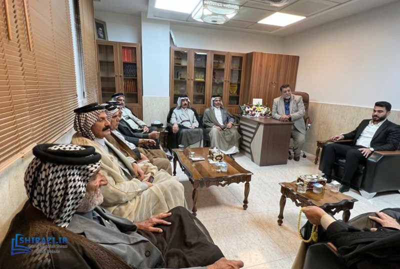 Several tribal personalities and nomadic figures in the holy city of Karbala gathered at the headquarters of Imam Hussein TV in this city. These Iraqi figures were welcomed by Sheikh Mostafa Mohammadi, the director of this TV network. During this visit, these tribal chiefs and nomadic figures offered their congratulations on the new building of Imam Hussein TV at Qilbah street, next to the shrine of Imam Hussein (A.S.). These visitors also expressed their utmost respect for the Grand Shia Jurist Ayatollah Shirazi, and the rest of the Shirazi Family, who have played an important role in the leadership of the Iraqi society at historic junctures of Iraq’s history, namely the 1920 public uprising of Iraq. These tribal figures also promised their outright support and adherence to the Islamic seminaries and the religious leadership, particularly the Grand Ayatollah Shirazi in the days to come. In his part, Sheikh Mostafa Mohammadi appreciated the constructive role of Iraqi tribes and relayed the Grand Jurist’s emphasis to strengthen nomadic communities inside Iraq. The director of Imam Hussein TV also introduced these visitors to the new project of this center, titled “Prospects of 50 Million People Attending Arbaeen Walk of 2030”.