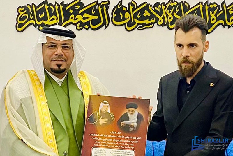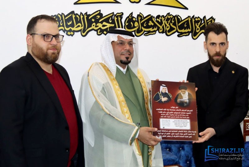 خلال الزيارة، قدّم الوفد لوحة نص جواب المرجع الديني سماحة آية الله العظمى السيّد صادق الحسيني الشيرازي دام ظله كرسالة إلى أمراء وشيوخ عشائر العراق حول الشعائر الحسينية المقدّسة والواجب تجاه القضية الحسينية المقدّسة إلى أمير السادة الأشراف السيّد جواد الطيّار.