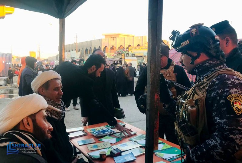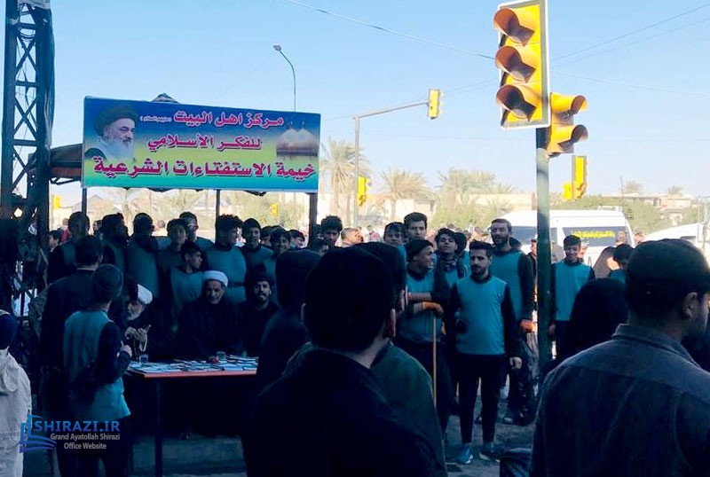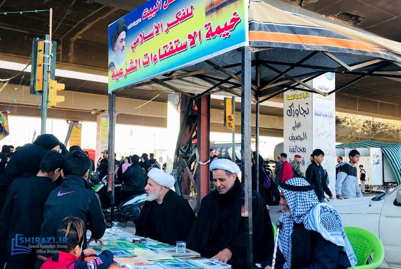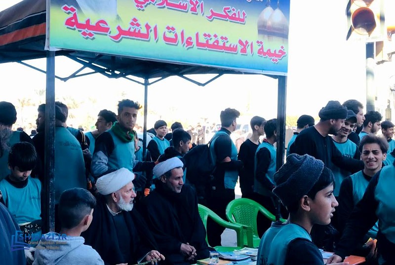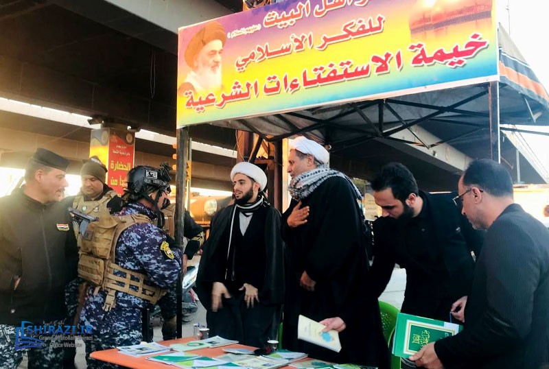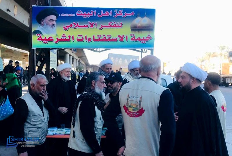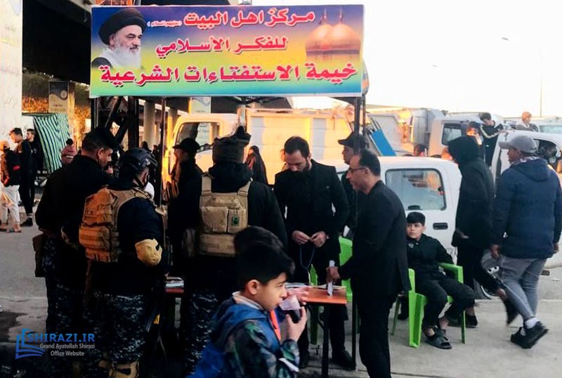 The queries tent of AhlulBayt Islamic Thought Center, affiliated with the Office of Grand Ayatollah Shirazi in Baghdad continues to help pilgrims with their religious queries during their visit to the shrine of Imam Kadhim (A.S.). This center also distributes books and pamphlets written by His Eminence Grand Ayatollah Shirazi and welcomes notable cultural, religious, and social figures.