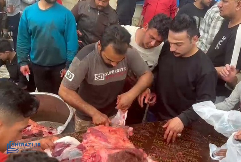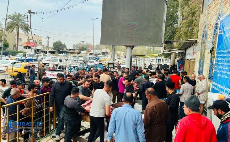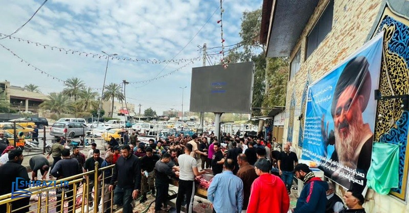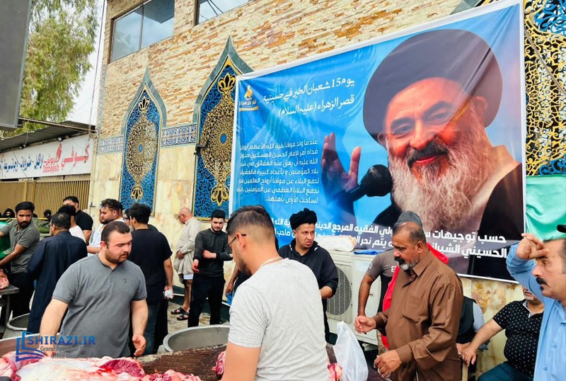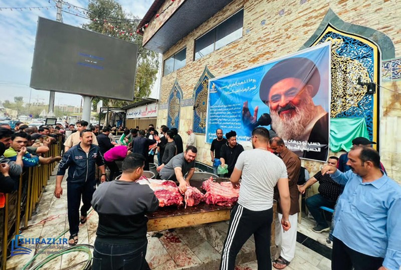 Qasrul-Zahra Husayniya, affiliated with the Office of Grand Ayatollah Shirazi in the holy district of Kadhimiya sacrificed several camels and sheep to celebrate the birthday of the promised savior, Imam Almahdi, may God hasten his reappearance. This charity work was carried out in compliance to the directives of Grand Ayatollah Shirazi. The meat from this sacrifice was given out to needy and impoverished families.