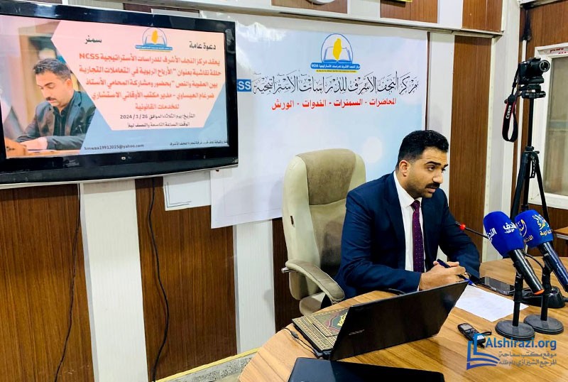 عقد مركز النجف الأشرف للدراسات الأستراتيجية NCSS المرتبط بمكتب المرجعية في مدينة النجف الاشرف، الحلقة النقاشية الاولى حول (الأرباح الربوية في التعاملات التجارية بين العقوبة والنص) بحضور ومشاركة المحامي الأستاذ ضرغام العيساوي.