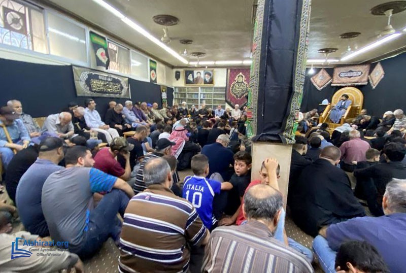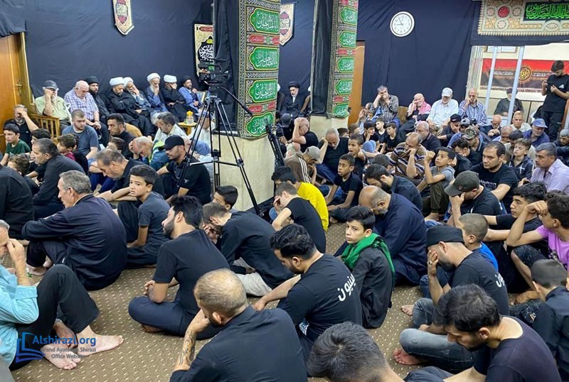 The office of the esteemed Ayatollah Sayyed Sadiq Hosseini Shirazi in Damascus held mourning ceremonies for the first ten days of Muharram 1446. The events were attended by numerous mourners and followers of the Ahl al-Bayt (peace be upon them), including religious, cultural, and social figures, as well as representatives of high religious authorities. During the ceremonies, Sayyed Riaz al-Hussain and Sheikh Akram Karabij delivered speeches about the significance of Imam Hussain (peace be upon him).