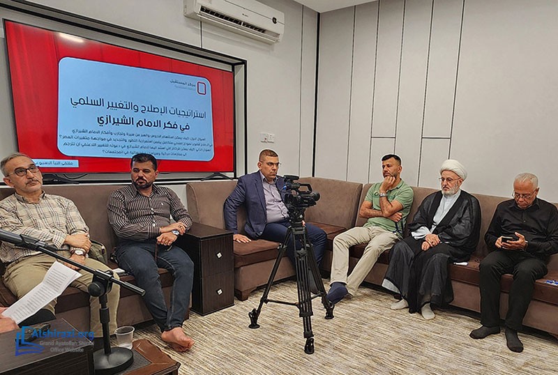The Center for Strategic Studies Al-Mustaqbal, affiliated with the Marja‘iyya in the holy city of Karbala, held an intellectual seminar titled “Strategies of Reform and Peaceful Change in the Thought of Grand Ayatollah Sayyid Muhammad Shirazi May His Soul Rest in Peace” at the Al-Naba’ Cultural and Media Institute.