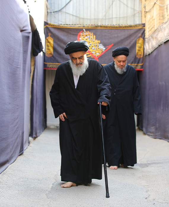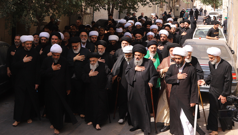 في صباح عاشوراء العاشر من شهر محرّم الحرام (2025/7/6م)، وكالسنوات السابقة، خرج المرجع الديني سماحة آية الله العظمى السيّد صادق الحسيني الشيرازي دام ظله، بلا رداء وحافياً.