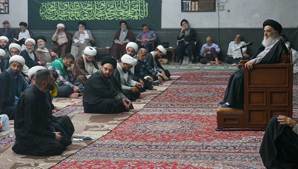 أُقيمت الجلسة العلمية اليومية للمرجع الديني سماحة آية الله العظمى السيّد صادق الحسيني الشيرازي دام ظله، مع العلماء والفضلاء وشخصيات دينية وطلبة العلوم الدينية والمؤمنين، في بيته المكرّم بمدينة قم المقدّسة، صباح اليوم الإثنين 15 ربيع الأول 1447 للهجرة (2025/9/8م). وقد شهدت الجلسة حضور العشرات من العلماء والشخصيات الدينية وطلبة الحوزات العلمية.