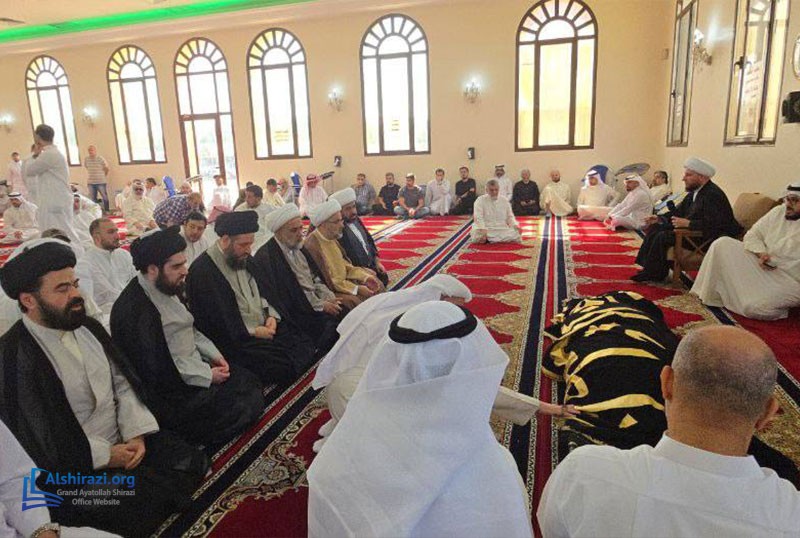 The funeral prayer for the late mother of Mr. Ismail Jannati, a prominent social figure in Kuwait, was led by Sayyid Ahmad Shirazi, may Allah grant him honor, the son of Grand Religious Authority Ayatollah Sayyid Sadiq Husayni Shirazi, may Allah prolong his life.