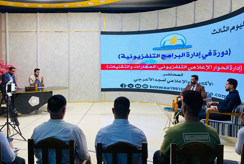 لليوم الثالث والأخير، أُقيم في مقرّ اتّحاد القنوات الفضائية والإذاعات الشيعية، أحد المراكز التابعة للمرجعية في مدينة النجف الأشرف، دورة تدريبية إعلامية بعنوان: «إدارة الحوار الإعلامي-التلفازي: المهارات والتقنيات».