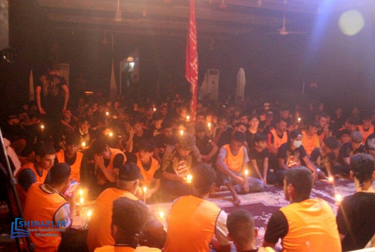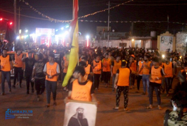 Each year in the evening of the Day of Ashura, the Batal Alqami Community organizes a mourning march in the City of Faw, in Basra province, where hundreds of Shia believers hold burning candles, and march in the city to offer their sympathies to Lady Zaynab, peace be upon her, and mourn the heart wrenching tragedies of Day of Ashura. It is worth mentioning that lighting candles is an ancient custom that commemorates the evening of the Day of Ashura, also known as the Lonely Night.