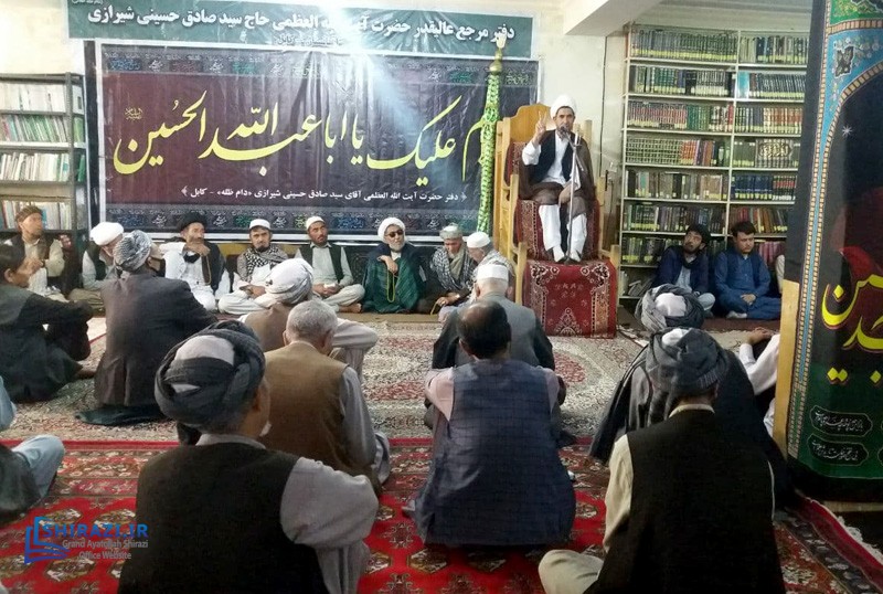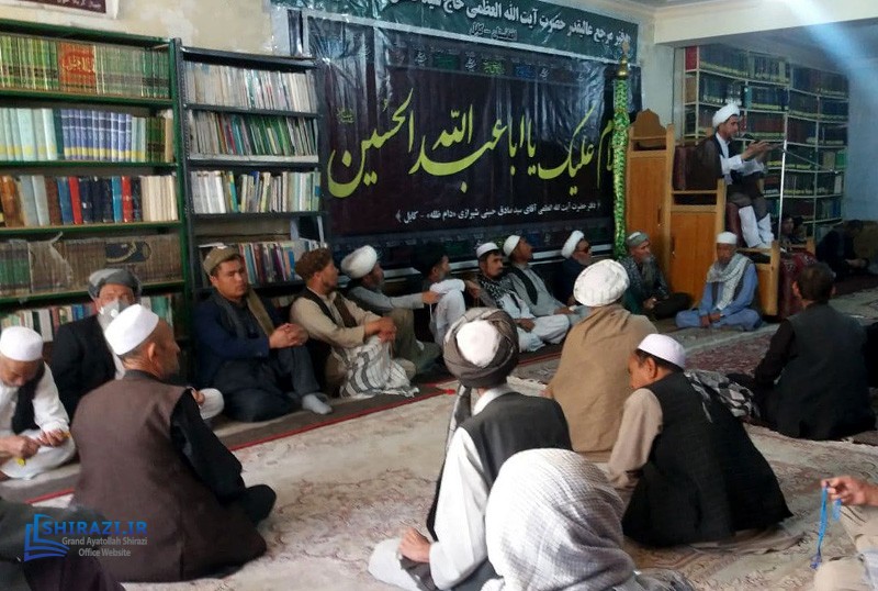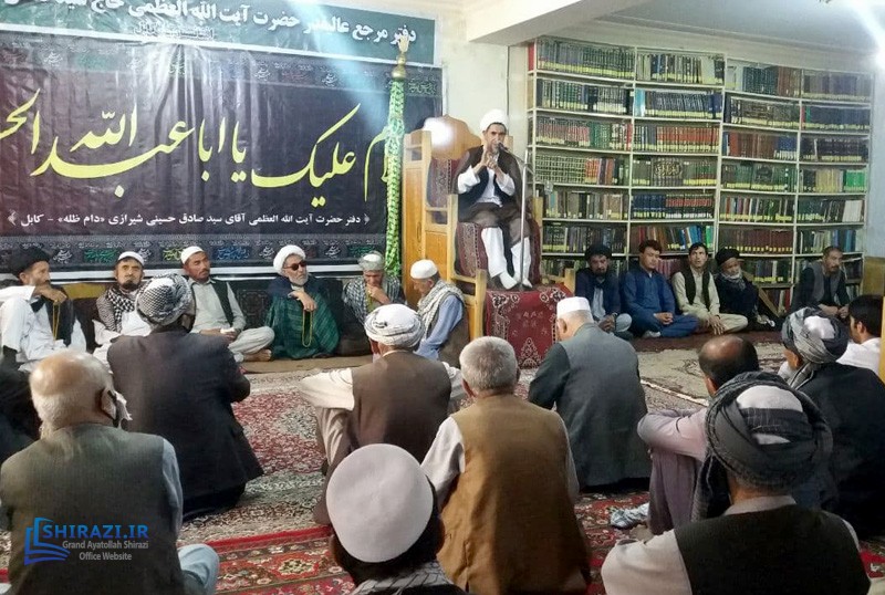 On Thursday, September 2, 2021, the Office of Grand Shia Jurist Ayatollah Shirazi in Kabul, the Capital of Afghanistan held a commemorative ceremony to honor the martyrdom of Imam Hussein (peace be upon him). This ceremony was attended by cultural and religious figures, as well as the general public, whom listened to a lecture by Sheikh Shafiq. In his lecture, Mr. Shafiq outlined some important quality for a true believer, such as doing good deeds, having a forgiving nature, controlling one’s anger, repenting from past sins, and being charitable.