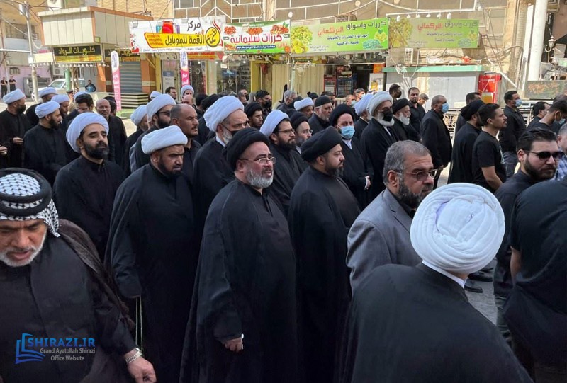Some delegates from the Office of Grand Jurist Ayatollah Shirazi in holy Karbala, as well as the PR manager of Grand Ayatollah Shirazi and the director of Imam Hussein Media Group took part in the funeral service of late Great Ayatollah Sayed Saeed Hakeem in this City. These delegates, accompanied with Sayed Mahdi Shirazi took part in this funeral, during which the participants offered their condolences to the Promised Savior, Imam al-Mahdi (may God hasten his reappearance). It is worth noting that Grand Ayatollah Sayed Saeed Hakeem passed away on Friday, 25th of Muharram 1443 AH. His body will be put to rest in holy Najaf, after the funeral service held in holy Karbala.