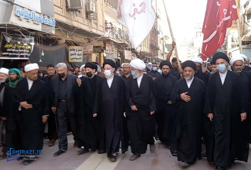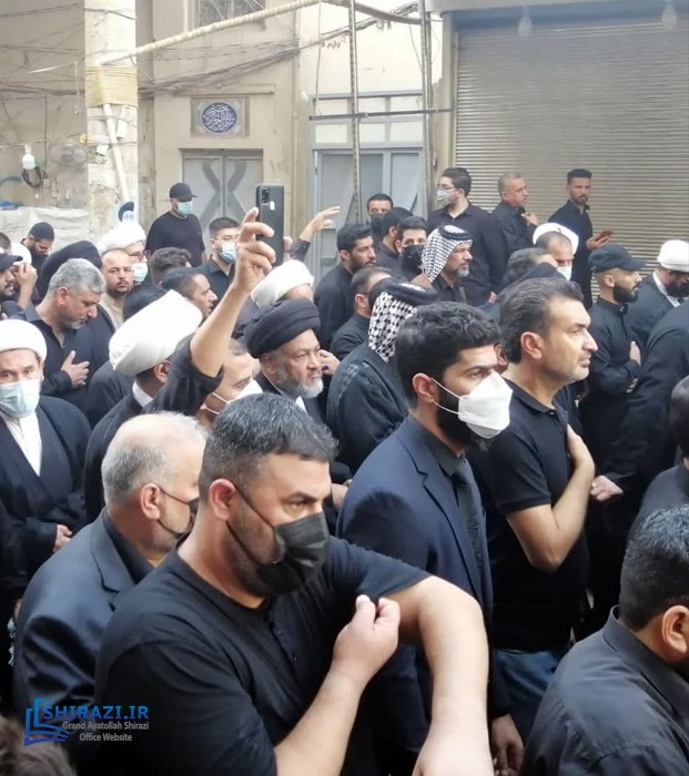 Delegates from the Office of Grand Ayatollah Shirazi in holy Najaf took part in the funeral service of late Great Ayatollah Hakeem on Sunday, 27th of Muharram 1443 AH. This ceremony was attended by groups of Shia believers and lovers of AhlulBayt (peace be upon them) as well as representatives of Islamic authorities and cultural and religious figures.