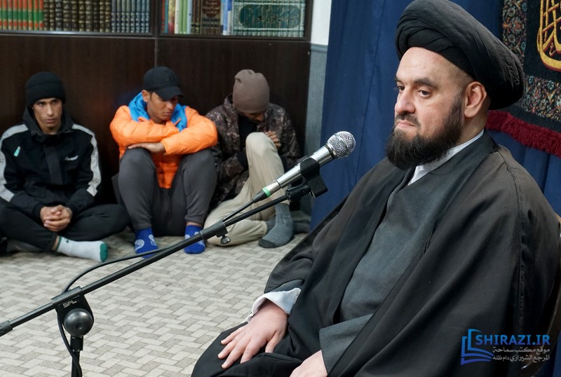 خلال حضورهم في بيت سماحة المرجع الشيرازي دام ظله، وبعد إقامتهم لصلاتي الظهر والعصر جماعة، استمع الحضور من أعضاء القافلتين إلى كلمة حجّة الإسلام السيّد جعفر الشيرازي، نجل سماحة المرجع الشيرازي دام ظله.