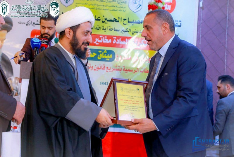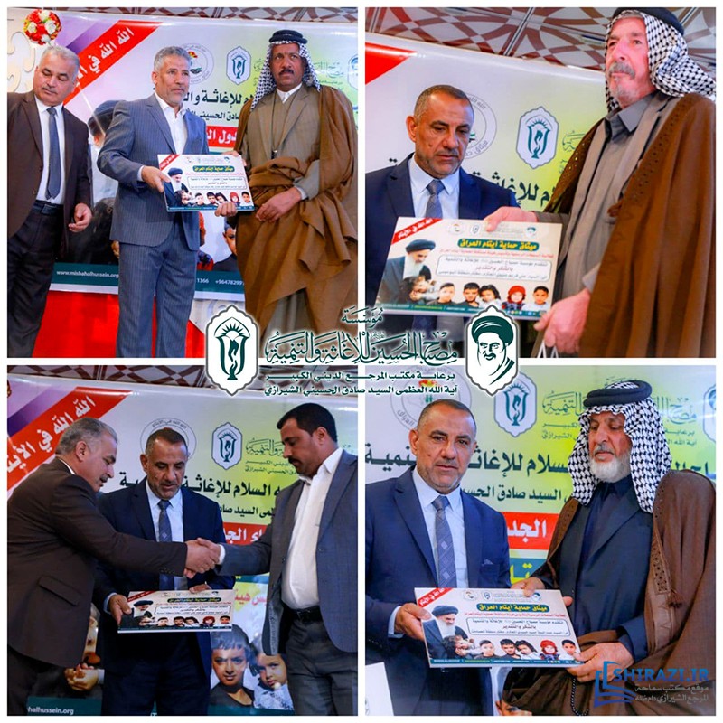 كرّمت مؤسسة مصباح الحسين صلوات الله عليه للإغاثة والتنمية، في مدينة كربلاء المقدّسة، التي تعمل تحت إشراف مكتب المرجع الديني سماحة آية الله العظمى السيّد صادق الحسيني الشيرازي دام ظله، عدداً من مخاتير قضاء الجدول الغربي في محافظة كربلاء، لتعاونهم الكبير في إنجاح خطوات مشروعها الإنساني (ميثاق حماية الأيتام في العراق).