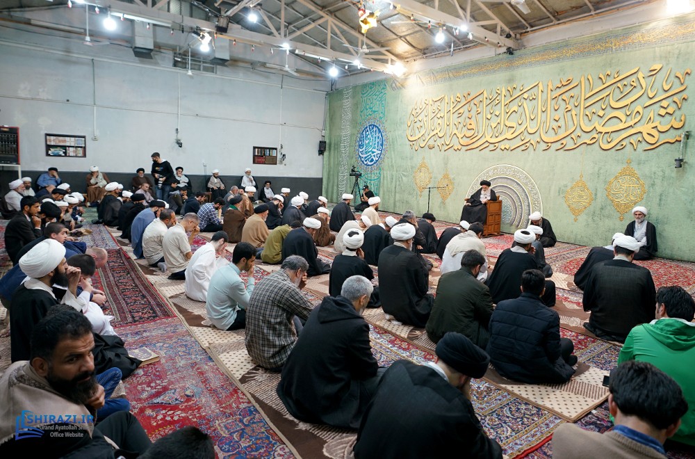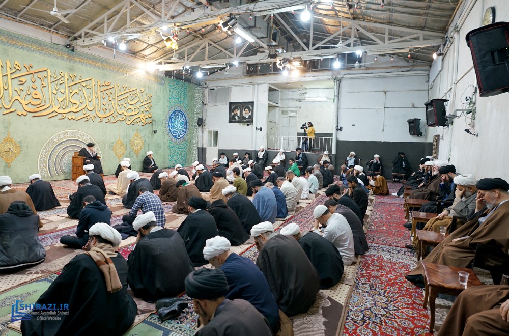 The House of His Eminence Grand Shia Islamic Jurist Ayatollah Sayed Sadiq Shirazi in the holy city of Qom in Iran hosts series of scholarly meetings during the nights of the holy month of Ramadan. In these meetings, senior scholars, clerics and seminarians ask their questions on Islamic law, history and beliefs from His Eminence Ayatollah Shirazi. The discussions in the latest round of these meetings were focused on rulings on permanent marriage, fasting, Khums tax, authenticity of ahadith, etc. The enthusiasts can follow the discussions in these meetings live on Marjaeyat TV, and other Shia TV networks, as well as al-Shirazi application, every night at 10:30 pm Qom local time.