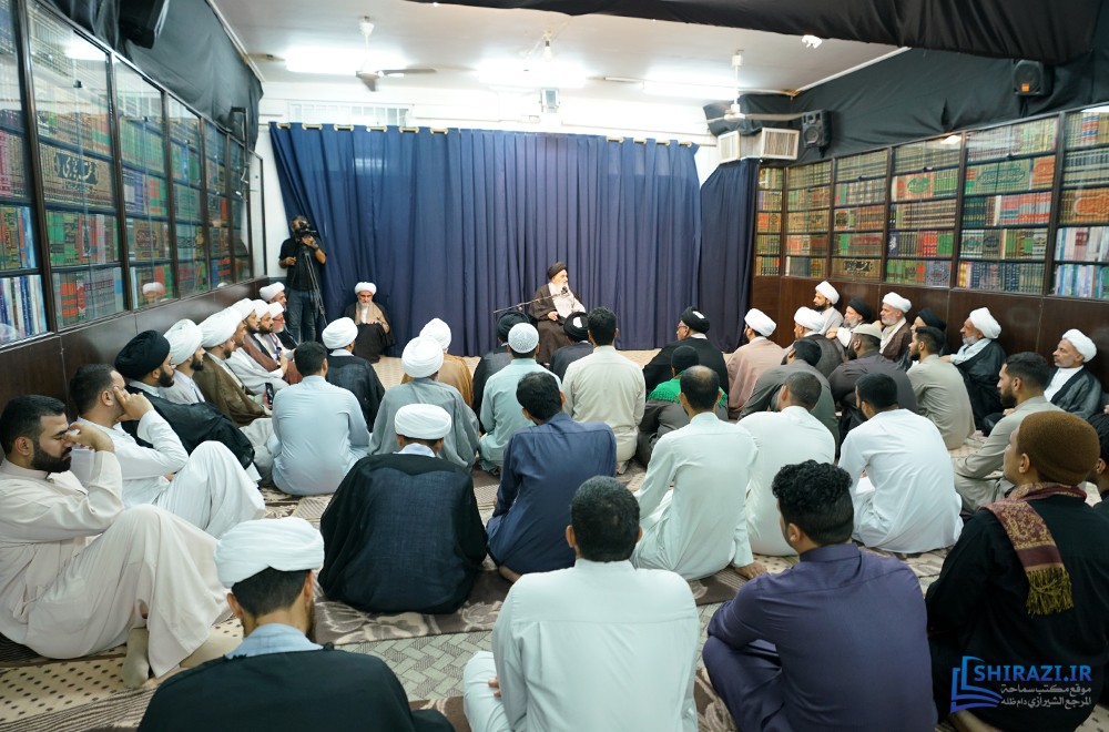 ألقى المرجع الديني سماحة آية الله العظمى السيّد صادق الحسيني الشيرازي دام ظله، كلمة قيّمة، بإدارة وطلبة حوزة ابن فهد الحلّي قدّس سرّه العلمية التابعة للمرجعية في مدينة كربلاء المقدّسة، خلال زيارتهم لبيت المرجعية بمدينة قم المقدّسة، وذلك مساء يوم الاثنين المصادف للثالث والعشرين من شهر ذي القعدة الحرام 1444 للهجرة (12/6/2023م)، أدناه نصّها الكامل: