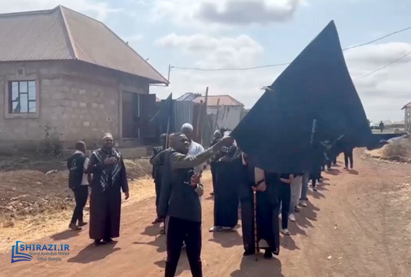The magnificent procession of the Arbaeen was organized by Sayyid Al-Shuhada Committee in East Africa. This event, in accordance with the recommendations of the esteemed Ayatollah Sayyid Sadeq Hosseini Shirazi, may his shadow endure, aimed at globalizing the rituals of Imam Hussein and reflecting and introducing the grandeur of the Arbaeen to the world. In the procession, hundreds of believers and followers of the Ahl al-Bayt, peace be upon them, from the Shia community in East Africa came together. They not only commemorated the Arbaeen of Imam Hussein but also prayed for the hastening of the reappearance of Imam Al-Mahdi (P.B.U.H). The attendees also supplicated to the Almighty to have their names included among the pilgrims of Imam Hussein, peace be upon him, during the Arbaeen pilgrimage. The Sayyid Al-Shuhada Committee is one of the organizations affiliated with the office of the esteemed Ayatollah Sayyid Sadeq Hosseini Shirazi in Kuwait. They have carried out various charitable, cultural, religious, educational, and welfare activities in underprivileged areas and Shia communities in African countries.