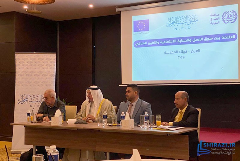 ناقش ملتقى النبأ للحوار التابع للمرجعية ومنظمة العمل الدولية برعاية الاتحاد الأوروبي، ناقش في ندوة حوارية (العلاقة بين سوق العمل والحماية الاجتماعية والتغيير المناخي).