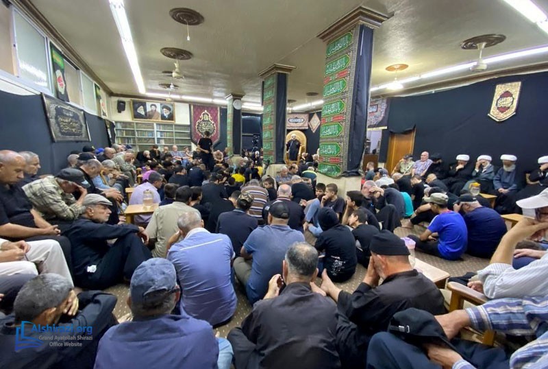 The office of the esteemed Ayatollah Sayyed Sadiq Hosseini Shirazi in Damascus held mourning ceremonies for the first ten days of Muharram 1446. The events were attended by numerous mourners and followers of the Ahl al-Bayt (peace be upon them), including religious, cultural, and social figures, as well as representatives of high religious authorities. During the ceremonies, Sayyed Riaz al-Hussain and Sheikh Akram Karabij delivered speeches about the significance of Imam Hussain (peace be upon him).