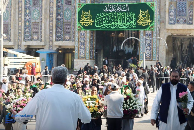 The streets of Karbala were filled with a large procession and celebration for the birth of Imam Ali (PBUH) on the 13th of Rajab. Organized by the Public Relations Center of Ayatollah Sayed Sadiq al-Husseini Shirazi’s office, many Shia Muslims gathered near the shrine of Allama Ahmad Bin Fahd al-Hilli. Participants carried flowers, chanted slogans in support of Prophet Muhammad (PBUH) and his family, and proceeded to Zaynabiya Hill to congratulate Lady Zaynab (PBUH). Sayed Aref Nasrallah explained that due to recent security conditions, the procession was moved from Damascus to Karbala. The event concluded with the recitation of the Ziyarat of Lady Zaynab (PBUH), attended by thousands, including religious and cultural figures.