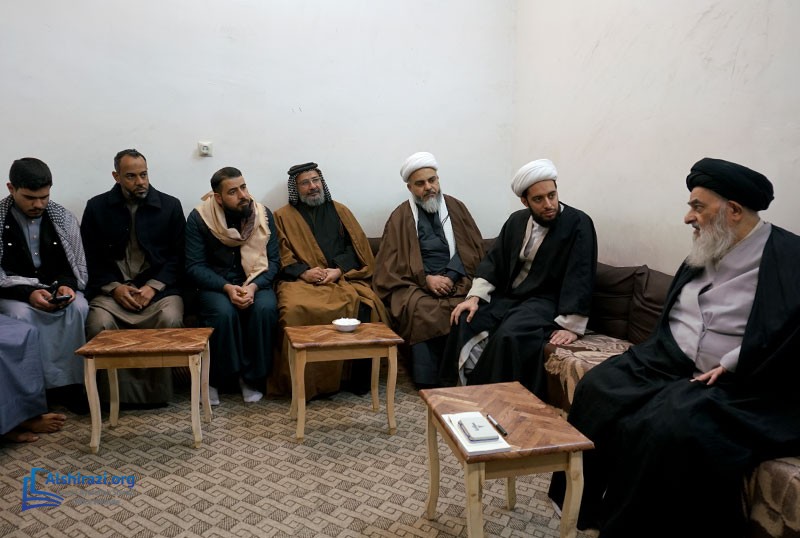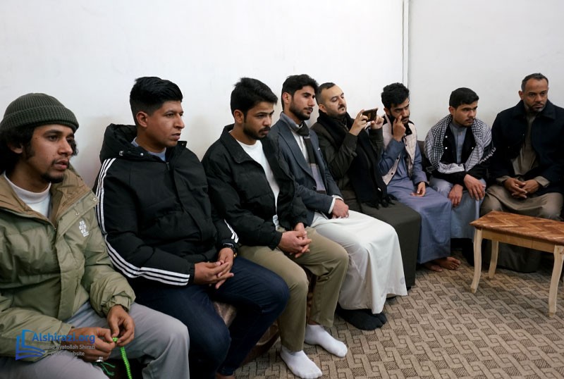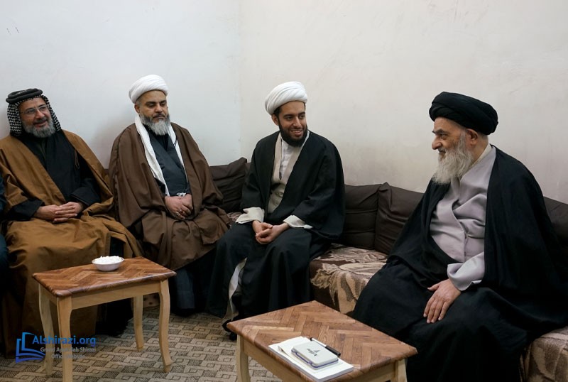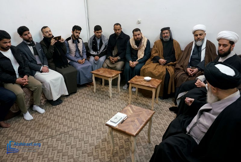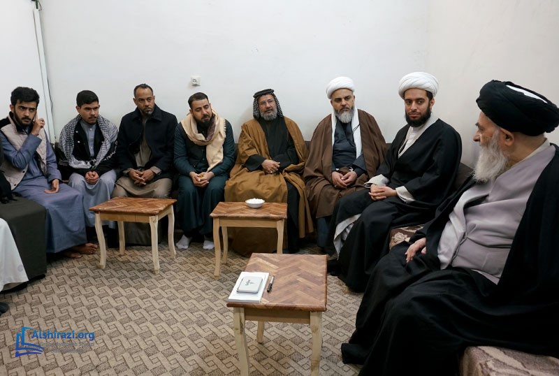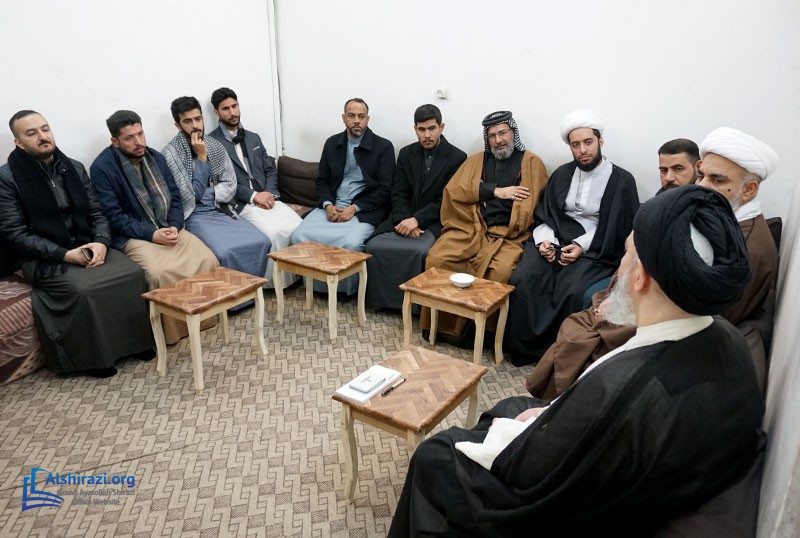 A group of students and teachers from the Allama Muhaqqiq Karaki Seminary, one of the centers associated with the religious authority in the holy city of Karbala, visited Grand Ayatollah Sayed Sadiq Hussaini Shirazi in the holy city of Qom. This meeting took place during the delegation’s visit to Qom, where they benefited from the Grand Ayatollah's advice on spreading Islamic teachings according to the approach of the Ahlulbayt (peace be upon them) and conveying the Prophet Muhammad's (peace be upon him and his family) legacy worldwide. The delegation also met with Hujjat al-Islam Sayed Hussain Shirazi, son of the Grand Ayatollah, and received his guidance.