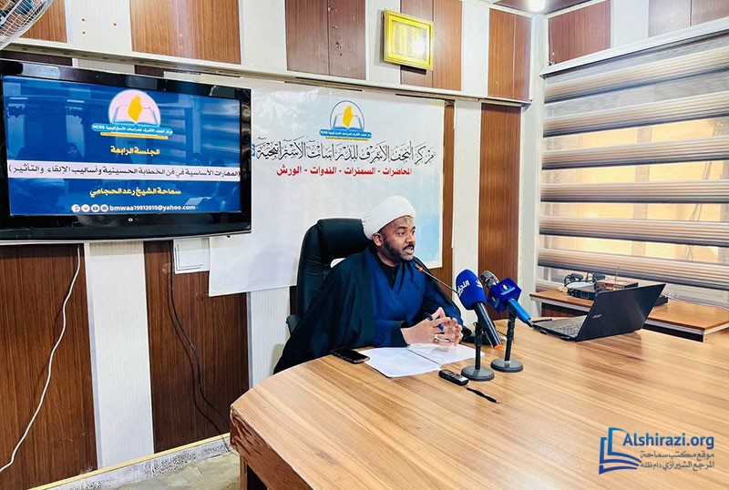 كما استضاف المركز الجلسة الرابعة من الدورة التخصصية في فن الخطابة الحسينية، تحت عنوان (المهارات الأساسية في فن الخطابة وأساليب التأثير)، التي حاضر فيها حجة الإسلام الشيخ رعد الحجامي وأدارها حجة الإسلام الشيخ غازي كامل الشبلي، وسط إقبال واسع من المهتمين بهذا المجال.