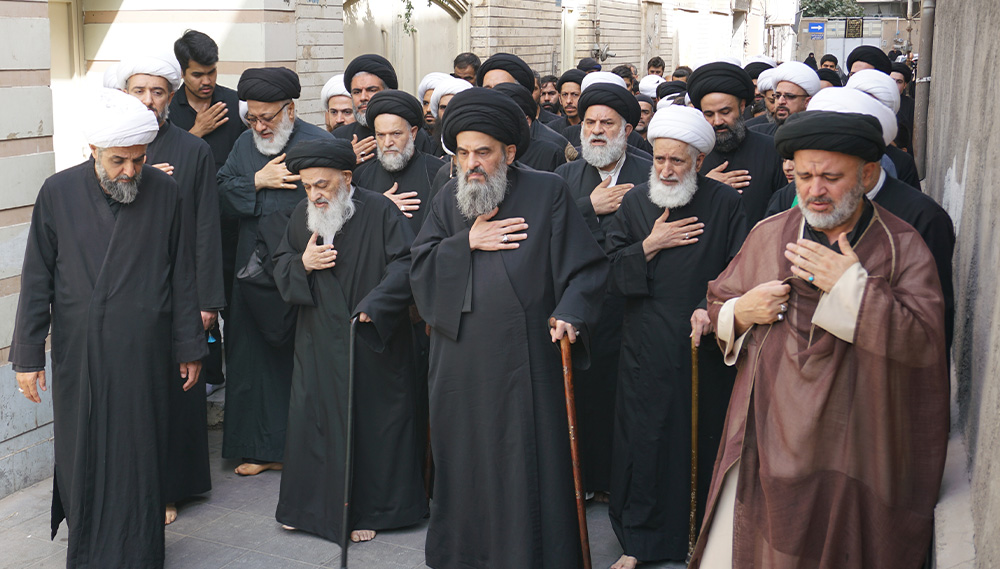 في صباح عاشوراء العاشر من شهر محرّم الحرام (2025/7/6م)، وكالسنوات السابقة، خرج المرجع الديني سماحة آية الله العظمى السيّد صادق الحسيني الشيرازي دام ظله، بلا رداء وحافياً.