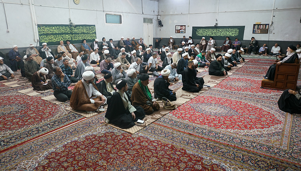 أُقيمت الجلسة العلمية اليومية للمرجع الديني سماحة آية الله العظمى السيّد صادق الحسيني الشيرازي دام ظله، مع العلماء والفضلاء وشخصيات دينية وطلبة العلوم الدينية والمؤمنين، في بيته المكرّم بمدينة قم المقدّسة، صباح اليوم الإثنين 15 ربيع الأول 1447 للهجرة (2025/9/8م). وقد شهدت الجلسة حضور العشرات من العلماء والشخصيات الدينية وطلبة الحوزات العلمية.